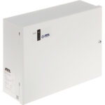 Zestaw IP-5-11-E składa się z modułu switcha XPOE-6-11-OF oraz zasilacza impulsowego APS-90-480-OF zamkniętych w obudowie wewnętrznej ABOX-E
