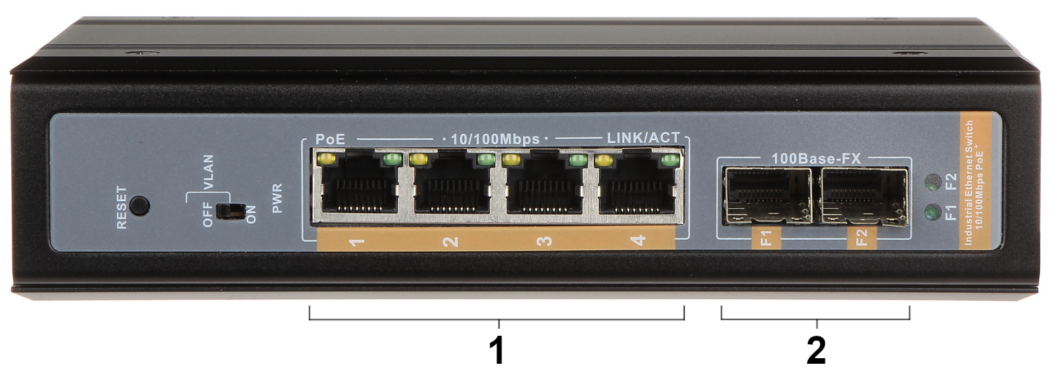 Switch PoE to urządzenie typu przemysłowego zapewniające płynną transmisję sieciową z prędkością 10 / 100 / 1000 Mbps.