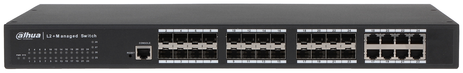 Urządzenie posiada 2 niezależne porty Uplink: SFP (światłowodowe).