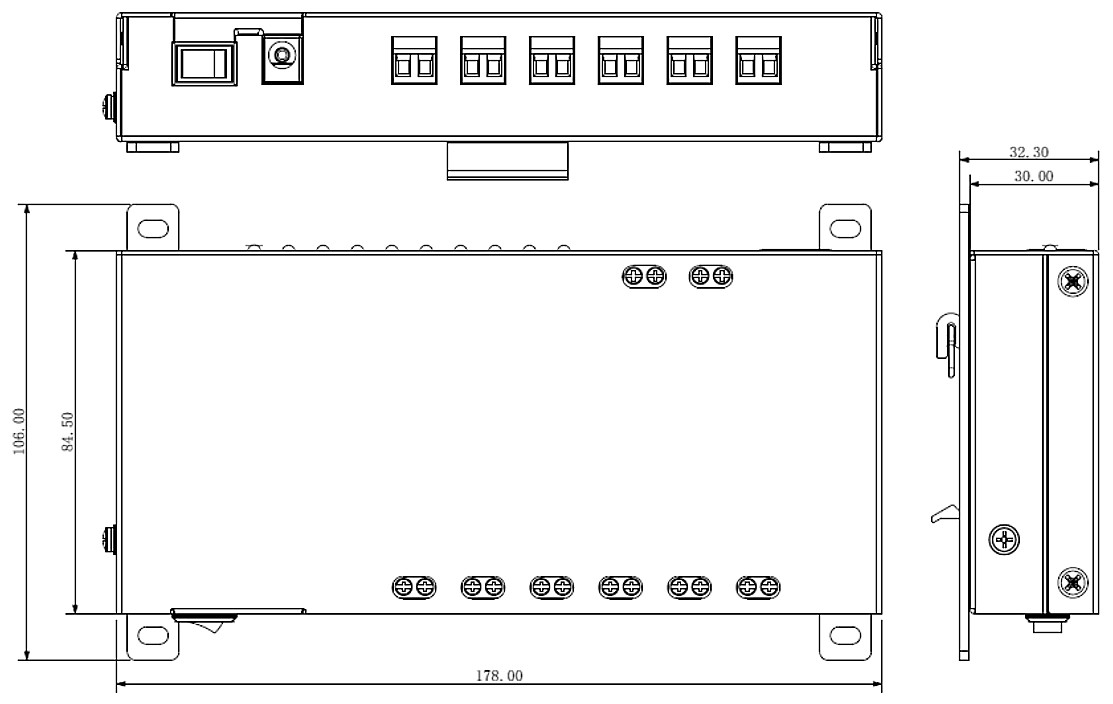 Urządzenie posiada 6 magistral 2-przewodowych do podłączenia monitorów i paneli zewnętrznych (zasilanie oraz transmisja sygnału) oraz 1 gniazdo Ethernet do podłączenia sieci LAN.