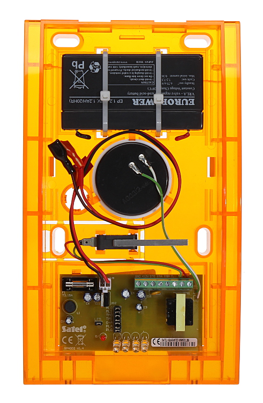 Konstrukcja sygnalizatora zapewnia wysoki stopień zabezpieczenia antysabotażowego (przed otwarciem i przed oderwaniem od podłoża)