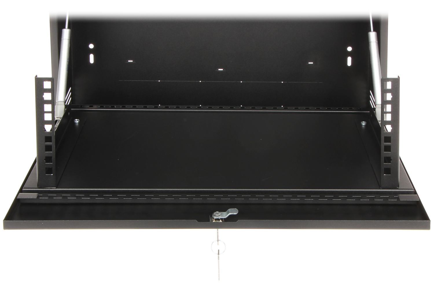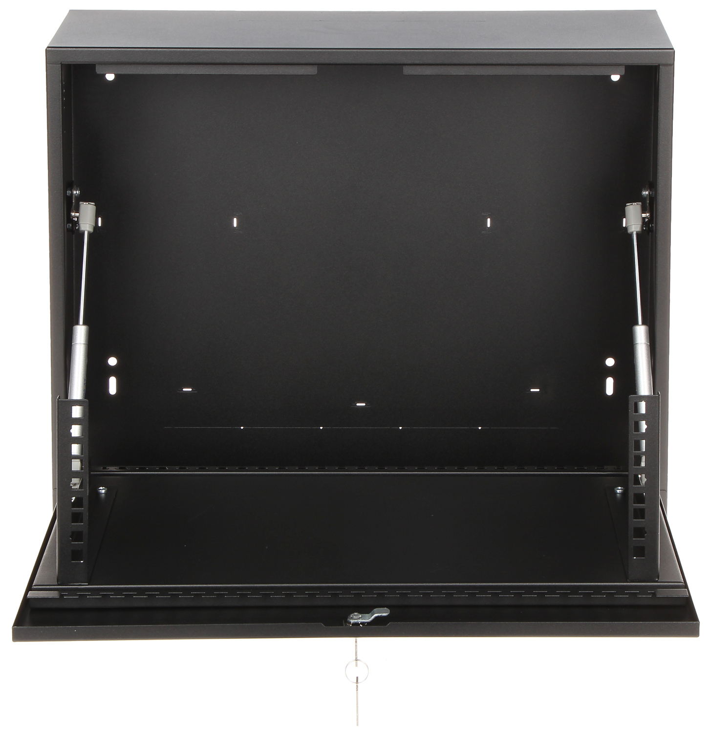 Zastosowane w szafie siłowniki spowalniają proces otwierania przedniej pokrywy, na której znajdują się szyny do montażu urządzeń