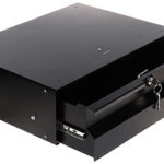Szuflada do szafy RACK 19″, zabezpieczona zamkiem na klucz