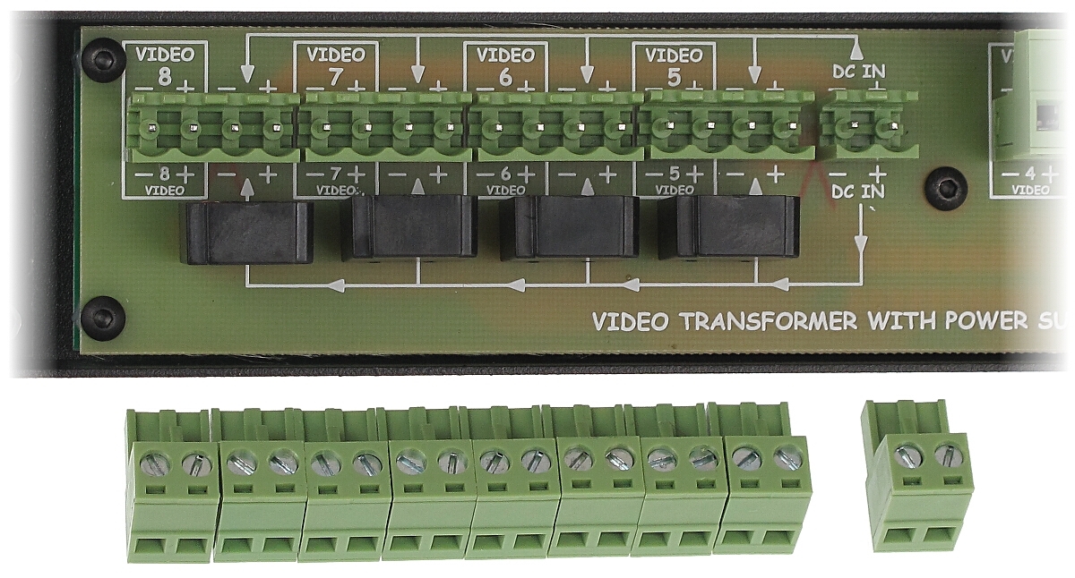 Urządzenie dopasowuje impedancję kabla koncentrycznego 75Ω do impedancji przewodu symetrycznego zapewniając przesył sygnału wizyjnego do 400m (skrętka komputerowa 5 kategorii) oraz eliminuje zakłócenia niesymetryczne.