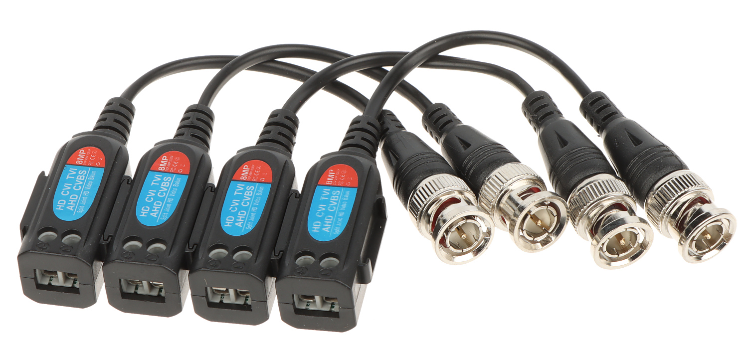 Urządzenie dopasowuje impedancję kabla koncentrycznego 75Ω do impedancji przewodu symetrycznego zapewniając przesył sygnału wizyjnego do 400m (skrętka komputerowa 5 kategorii) oraz eliminuje zakłócenia niesymetryczne