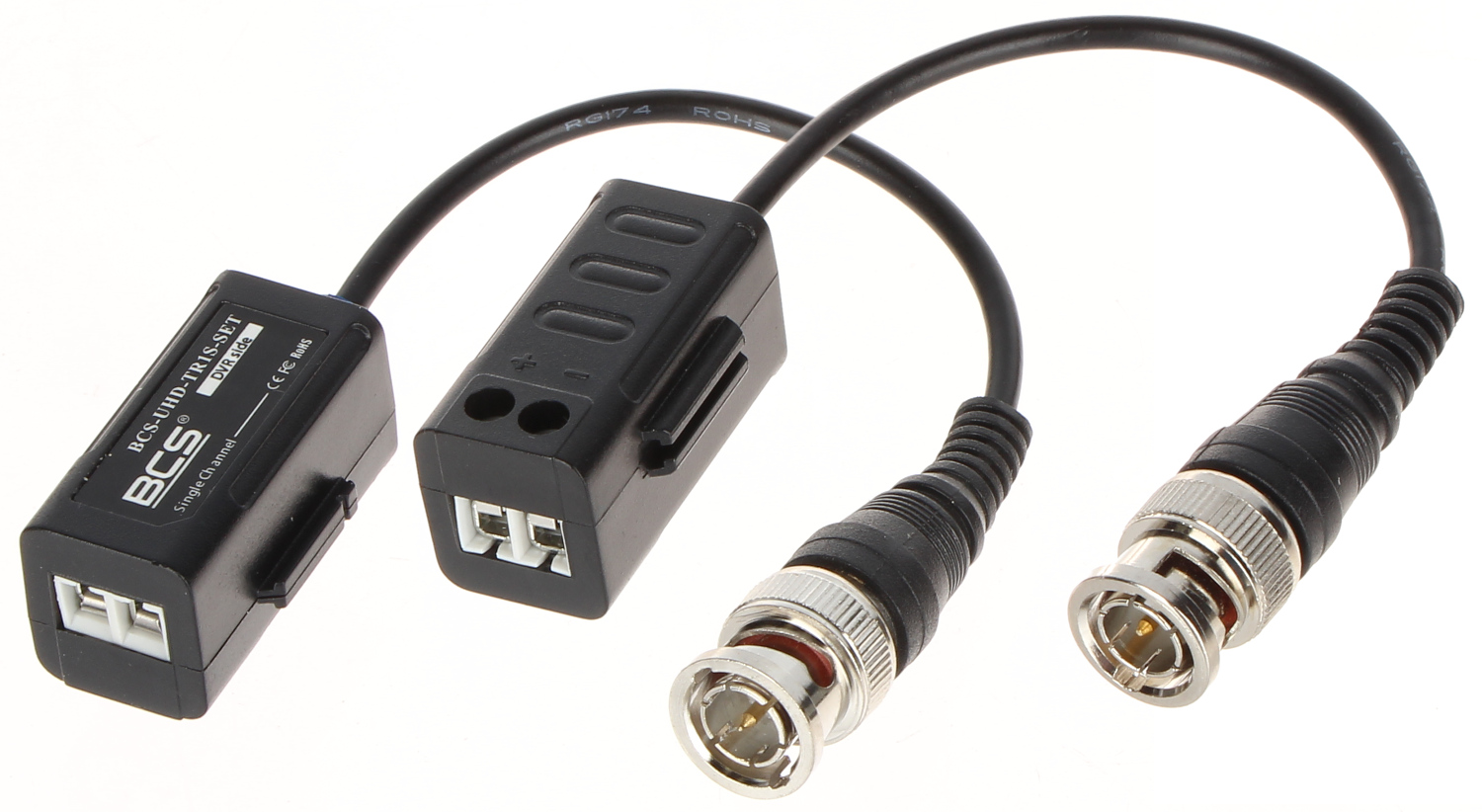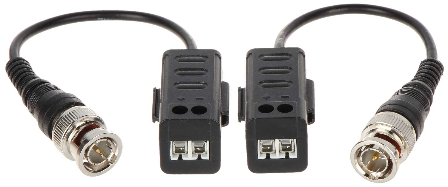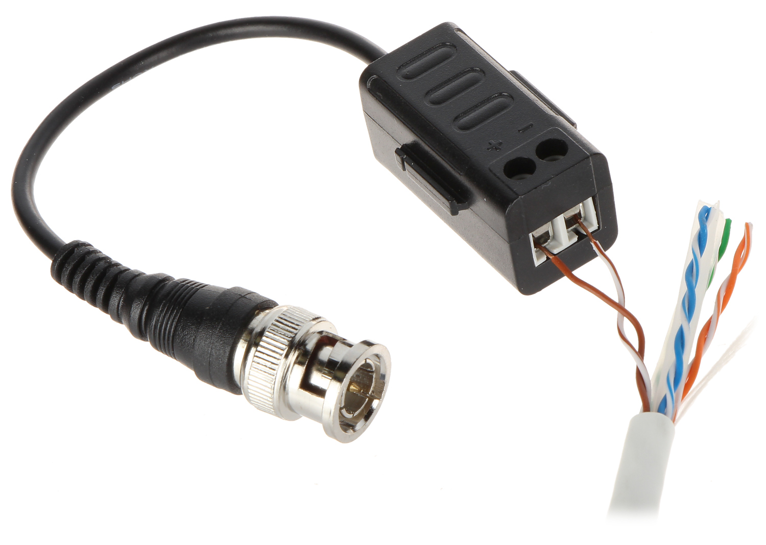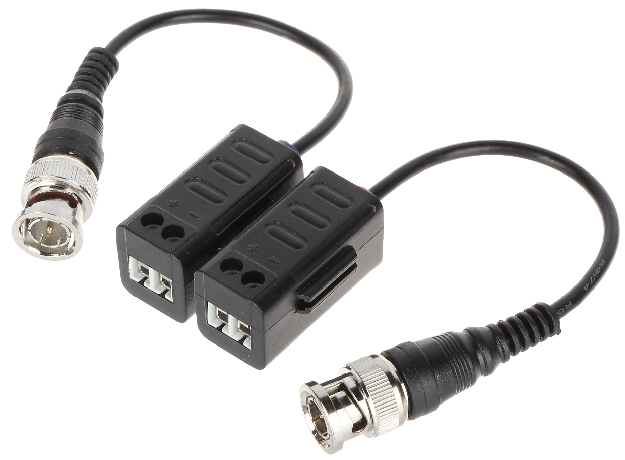 Urządzenie dopasowuje impedancję kabla koncentrycznego 75Ω do impedancji przewodu symetrycznego zapewniając przesył sygnału wizyjnego do 400m (skrętka komputerowa 5 kategorii) oraz eliminuje zakłócenia niesymetryczne.