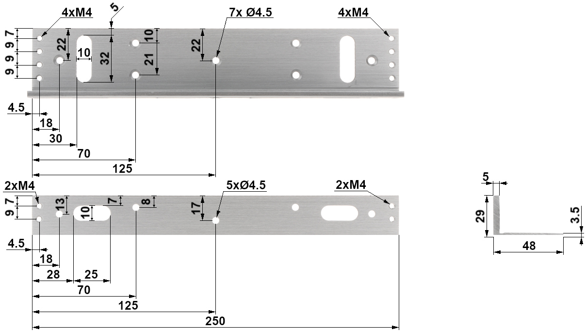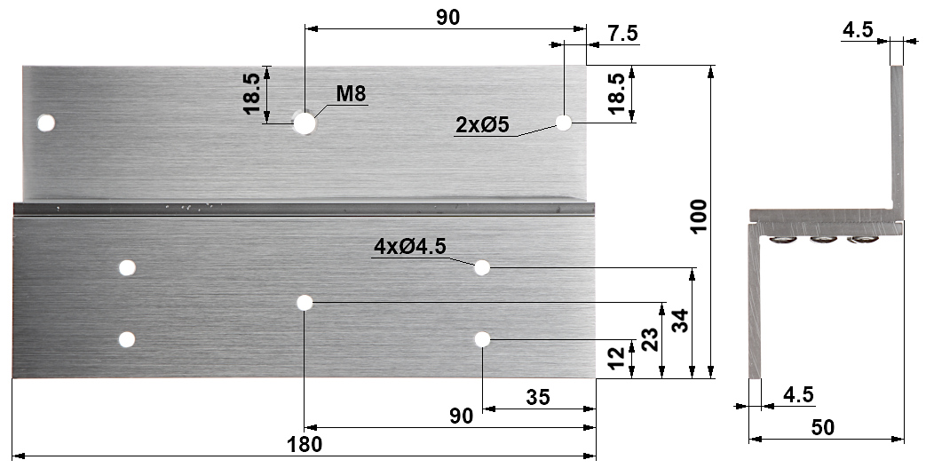 | Wymiary: | 190 x 81 x 72.5 mm – Uchwyt montowany na szklane drzwi 250 x 49 x 48 mm – Uchwyt montowany do szklanej futryny |