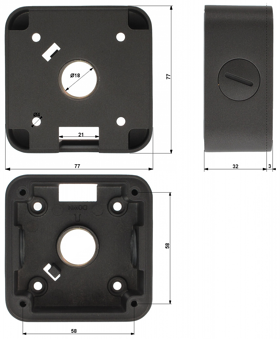 | Wymiary: | 49 x 49 x 29 mm (wewnątrz) 77 x 77 x 35 mm |
