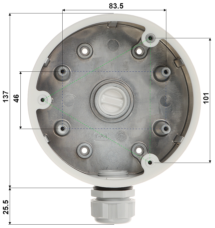 Posiada bardzo przydatną możliwość ukrycia kabli i złącz wychodzących z kamery.