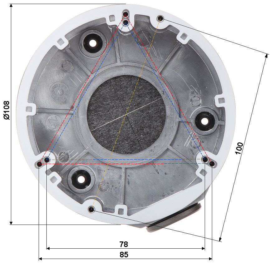 Posiada bardzo przydatną możliwość ukrycia kabli i złącz wychodzących z kamery.