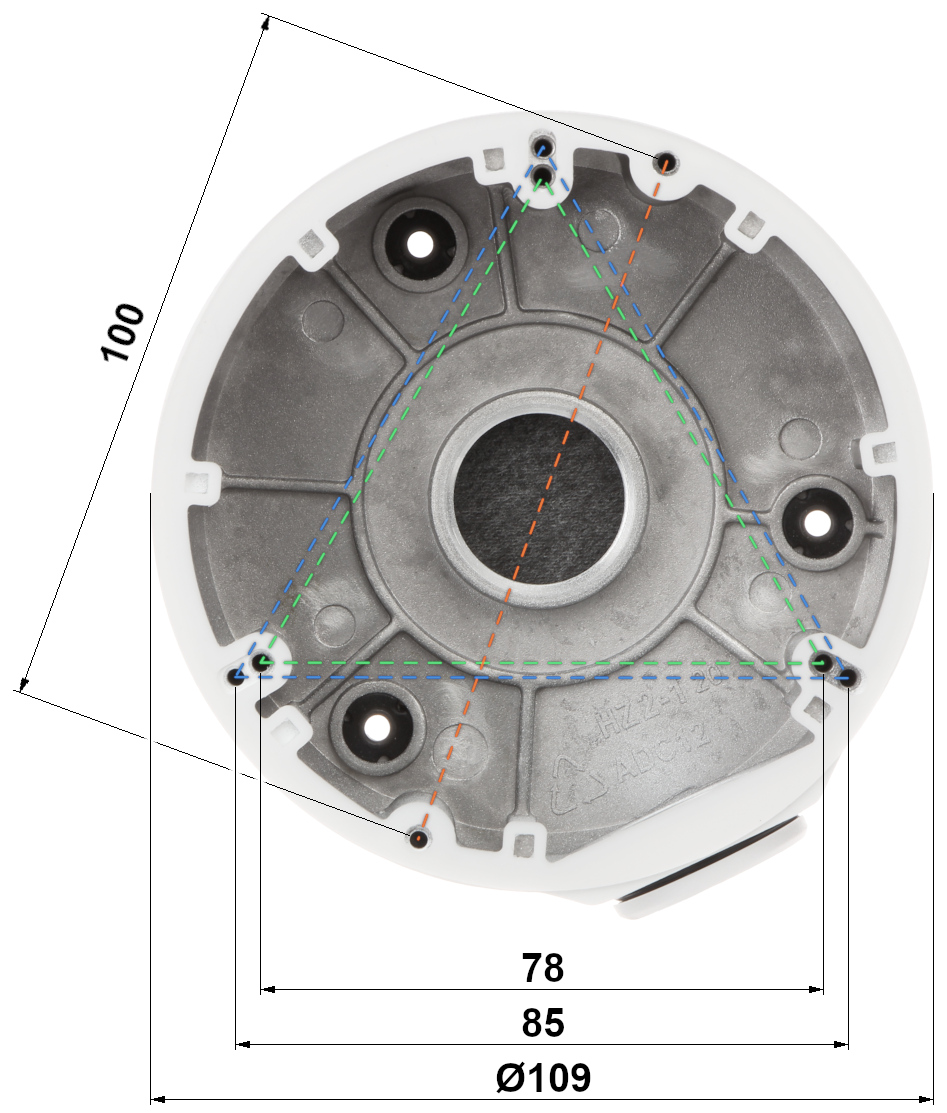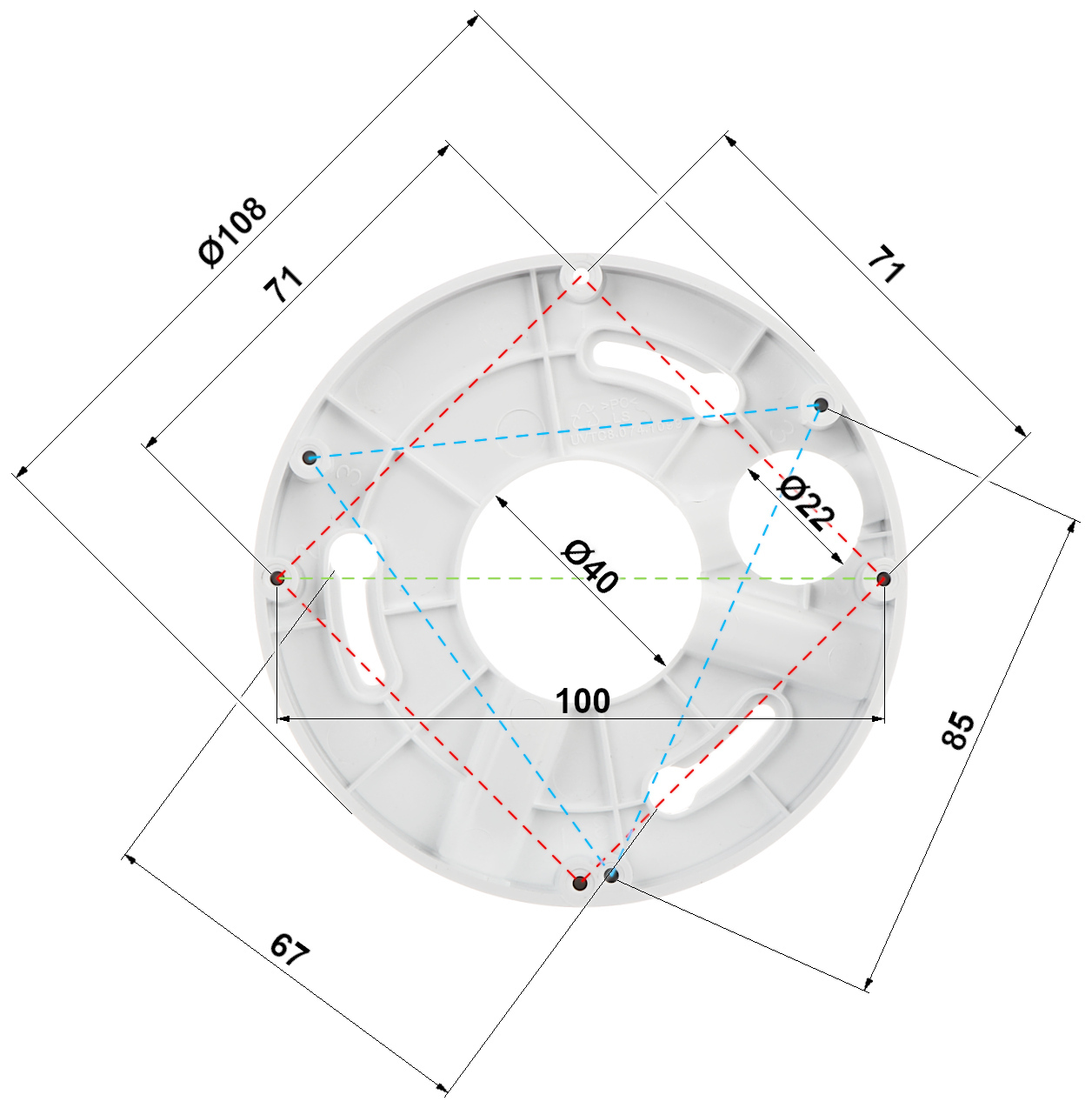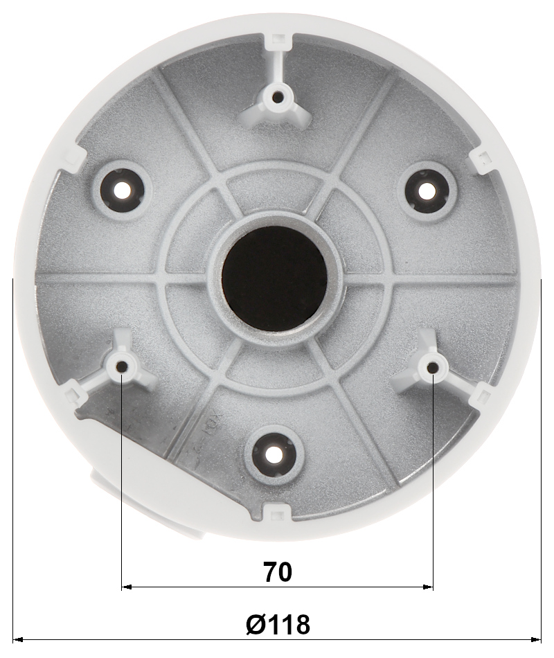 Średnica uchwytu: Ø 108 mm ; Materiał: Plastik ; Kolor: Biały ; Dystans od powierzchni montażu: 7 mm ;