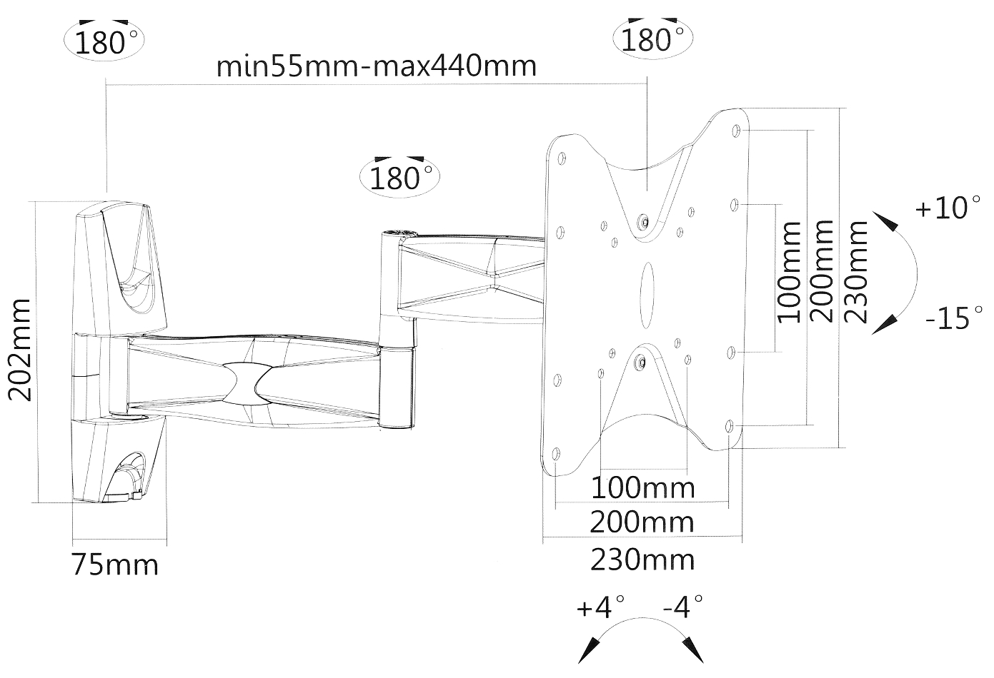 | Dystans od powierzchni montażu: | 55 … 440 mm od ściany |