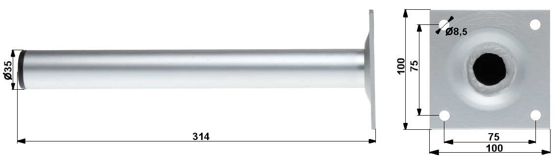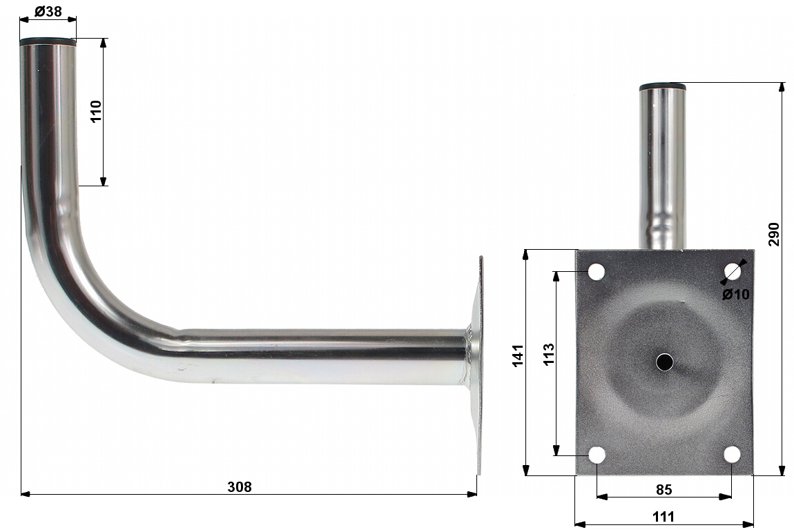 Średnica: Ø 38 mm ; Wysokość: 110 mm ; Dystans od powierzchni montażu: 405 mm ;