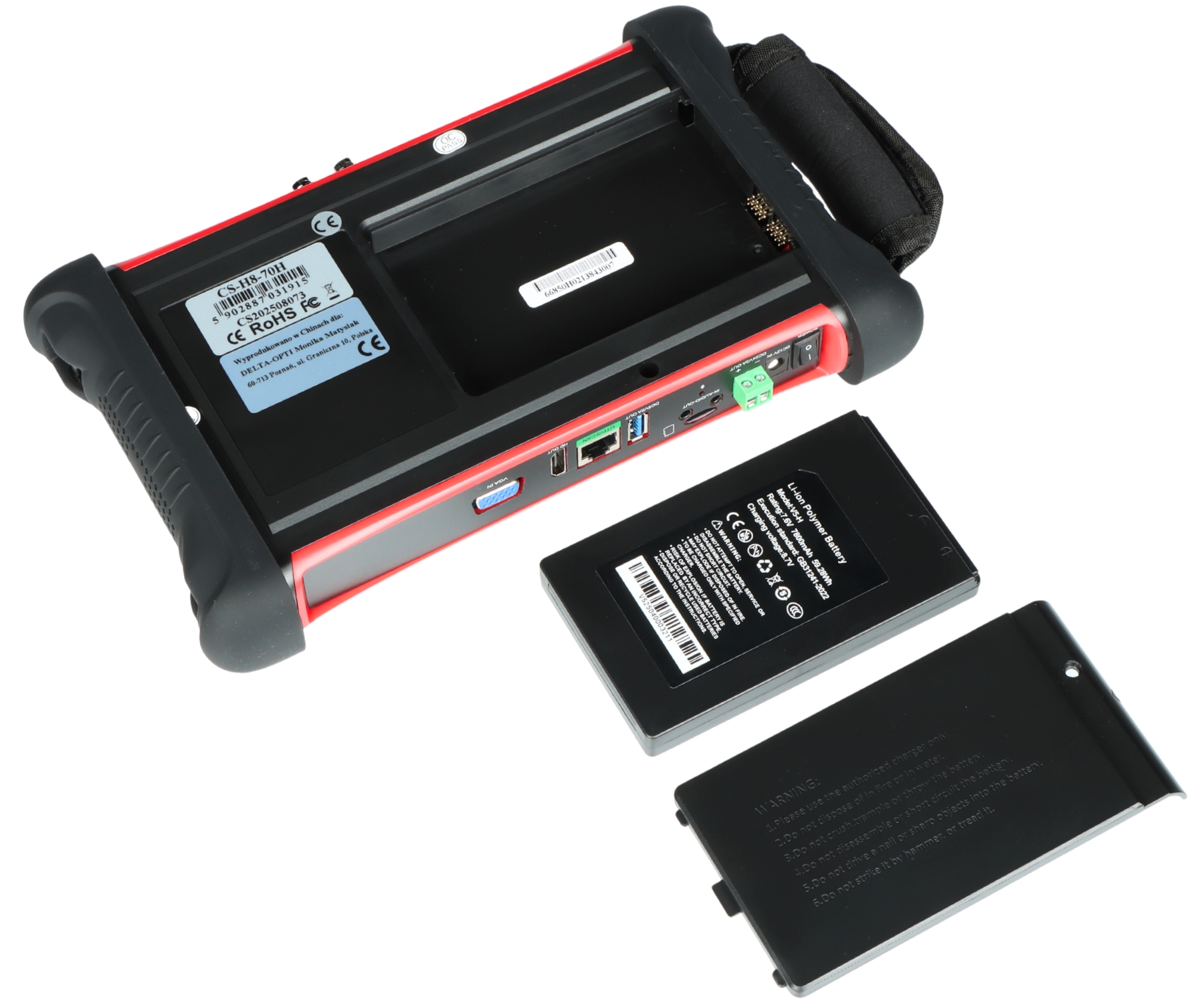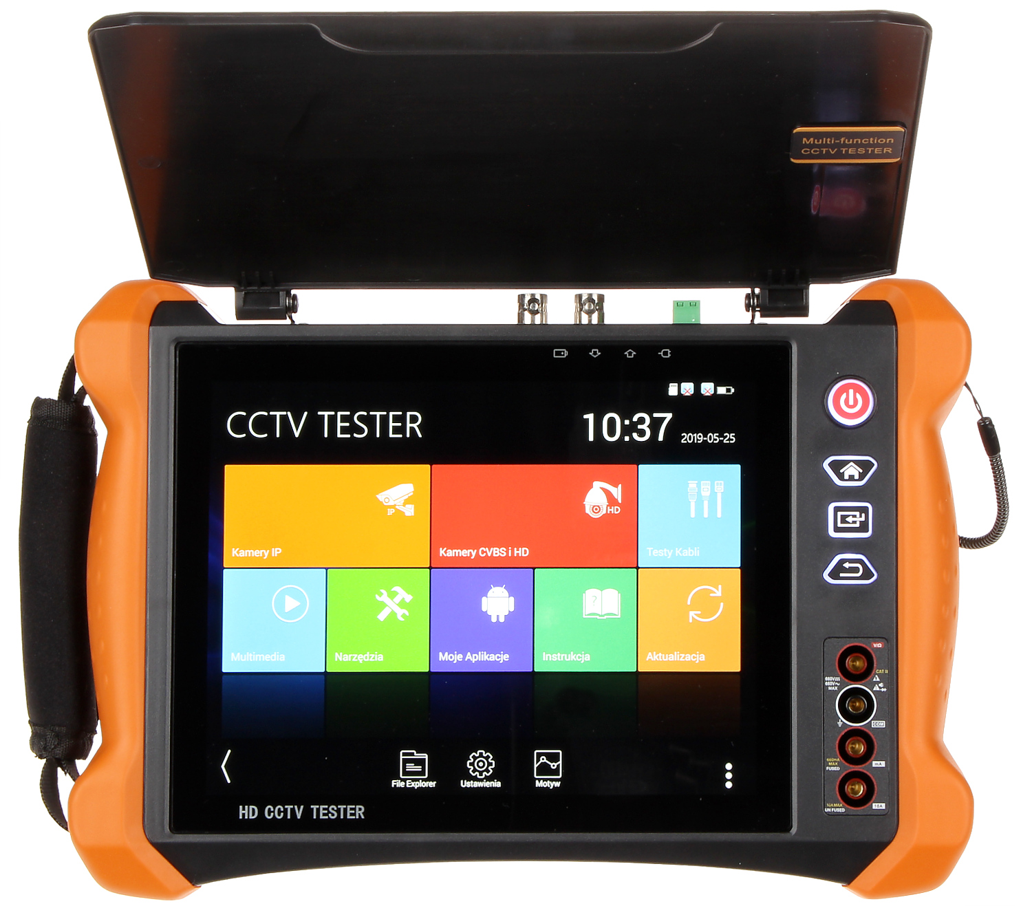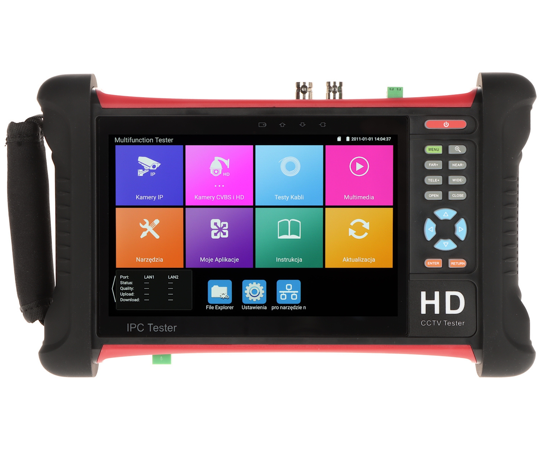 Wielofunkcyjny tester kamer AHD, HD-CVI, HD-TVI, IP, kamer analogowych, Speed Dome (PTZ), wyposażony w wiele dodatkowych funkcji, niezbędnych przy uruchamianiu instalacji CCTV