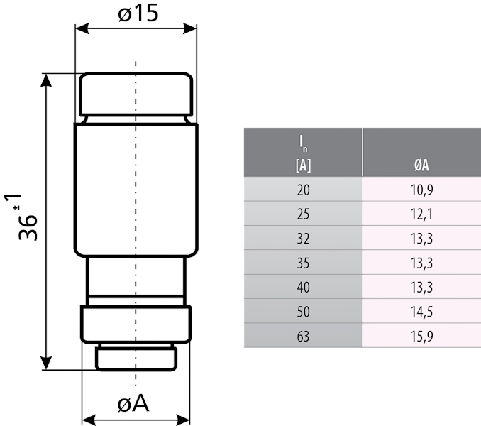 | Wymiary: | Ø 15 x 36 mm Ø 10.9 mm (A) |