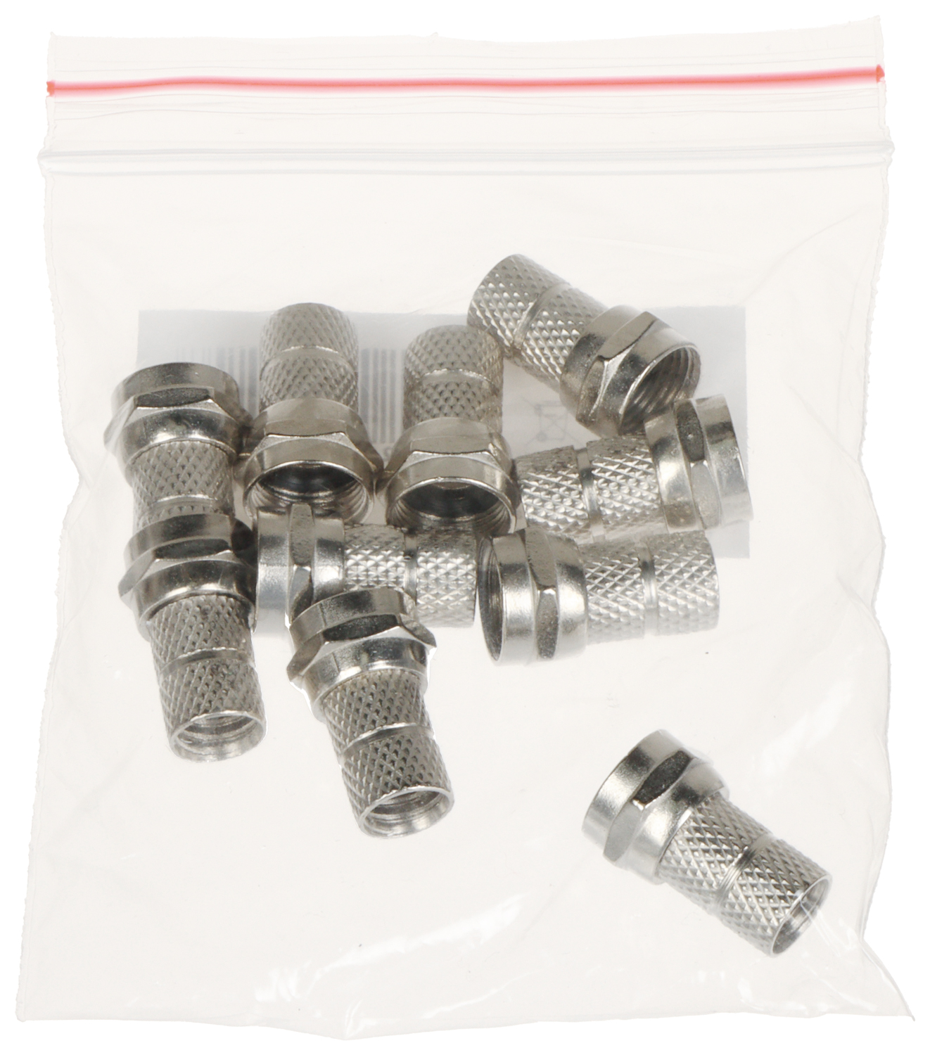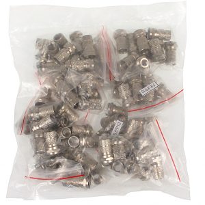 W opakowaniu: 100 szt. Podana cena za opakowanie ; Rodzaj złącza: “F” Wtyk prosty ; Przeznaczenie: Kabel koncentryczny ; Średnica kabla: max. 7.0 mm ;
