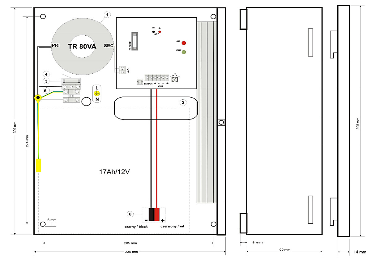 | Wymiary: | 382 x 324 x 108 mm Zasilacz buforowy |