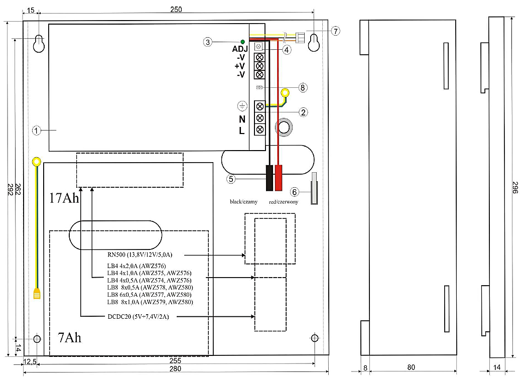 | Maks. wymiary akumulatora: | 250 x 175 x 80 mm |