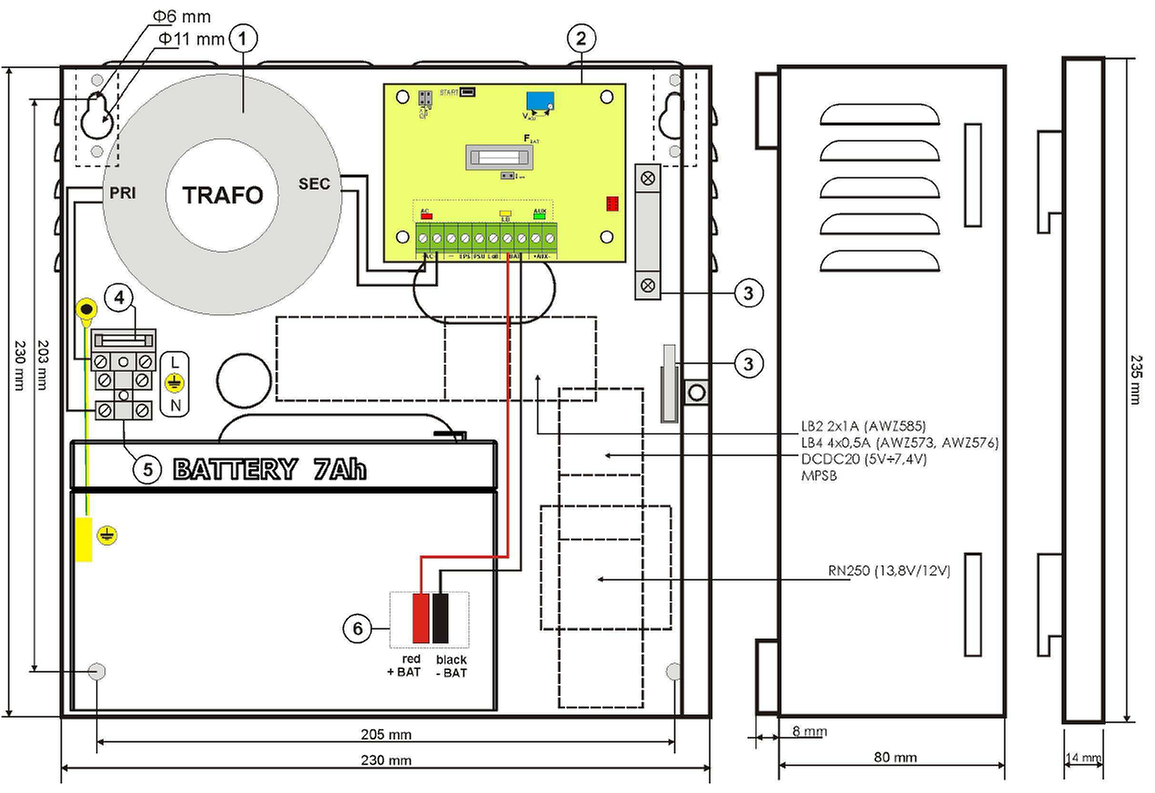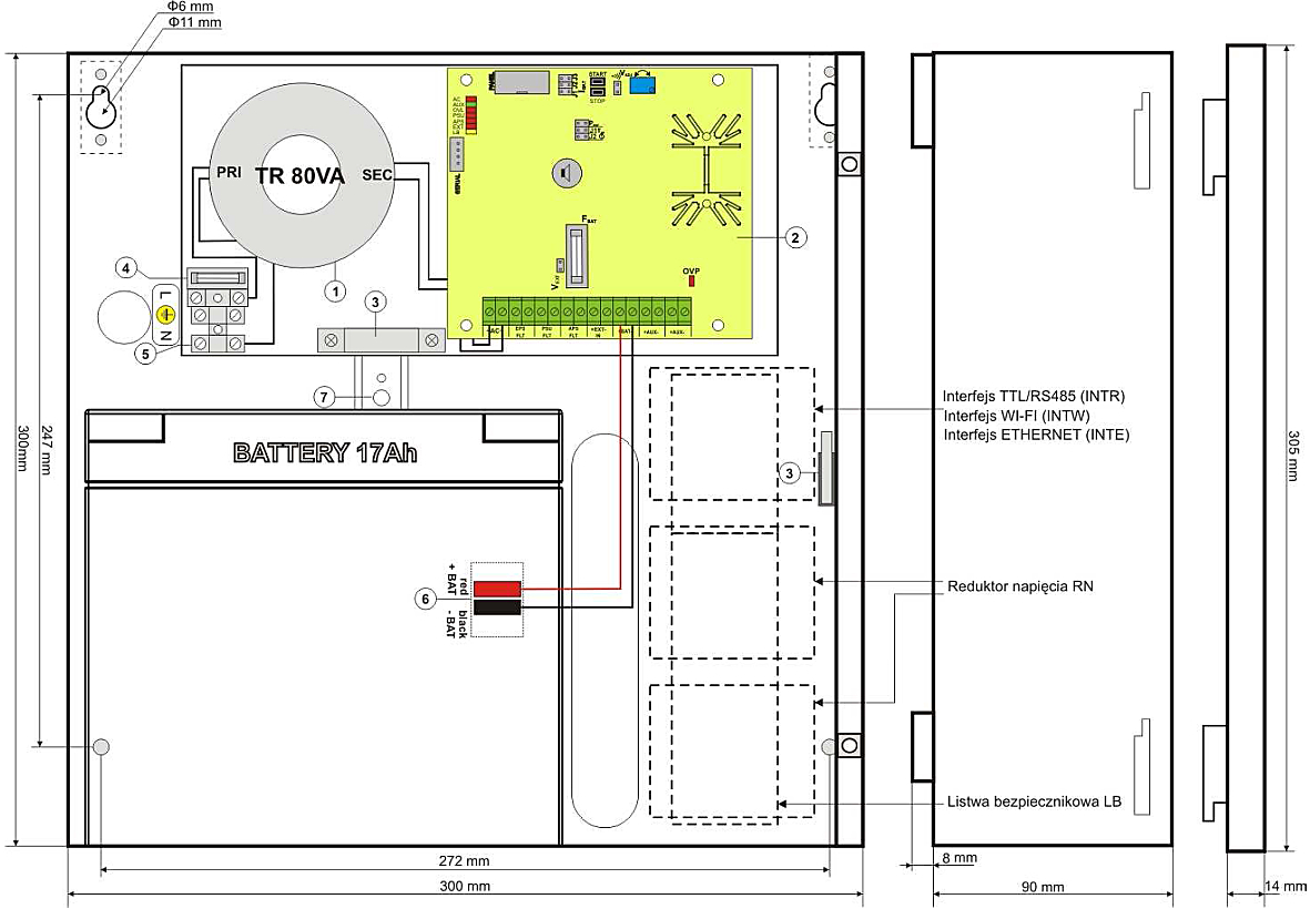 Zasilacz buforowy jest przeznaczony do zasilania central alarmowych, czujników, zamków szyfrowych, kamer, manipulatorów, domofonów i innych urządzeń wchodzących w skład systemu alarmowego.