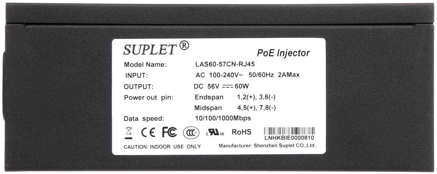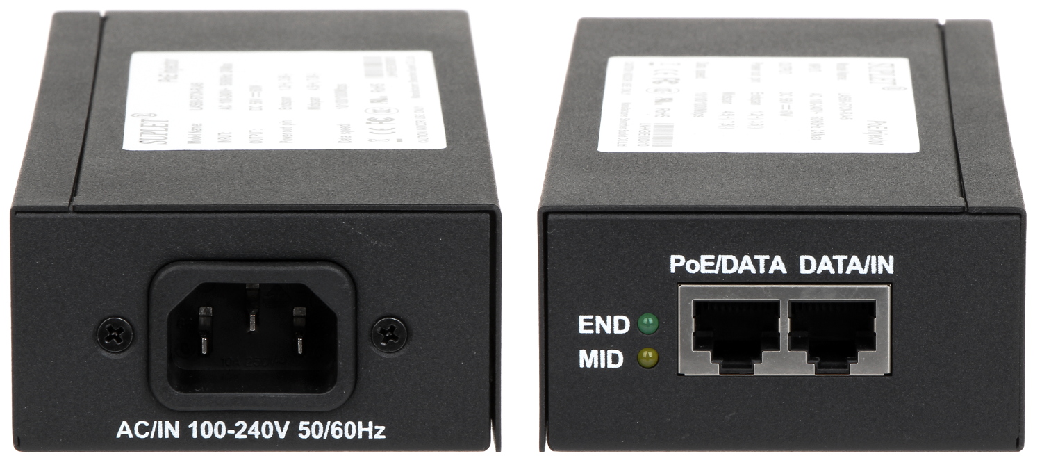 Urządzenie posiada funkcję “midspan”, która pozwala na instalowanie go między switchami które nie zawierają portów PoE, a urządzeniami sieciowymi (np. kamerami IP lub punktami dostępowymi), które muszą być zasilane przez okablowanie UTP