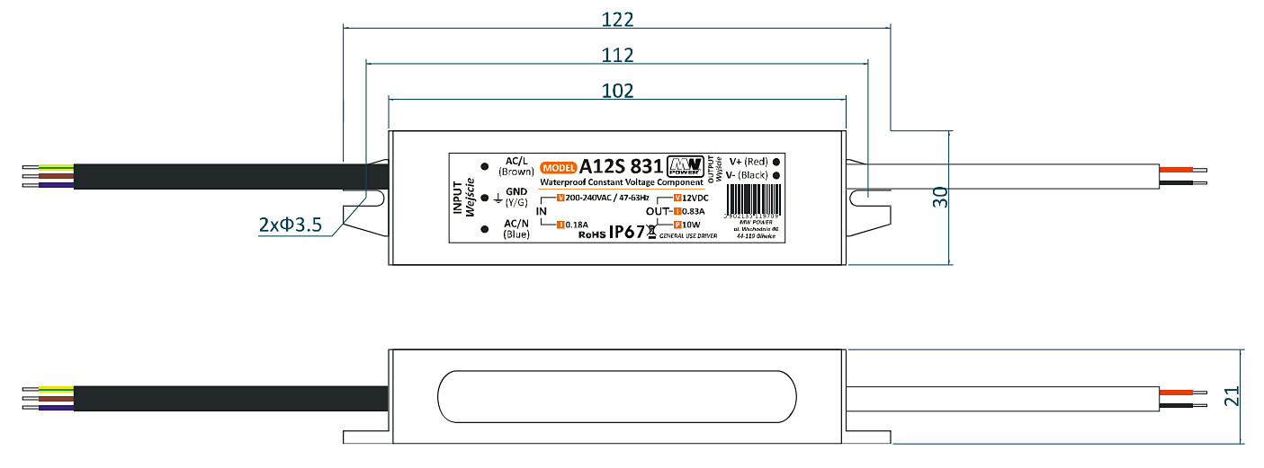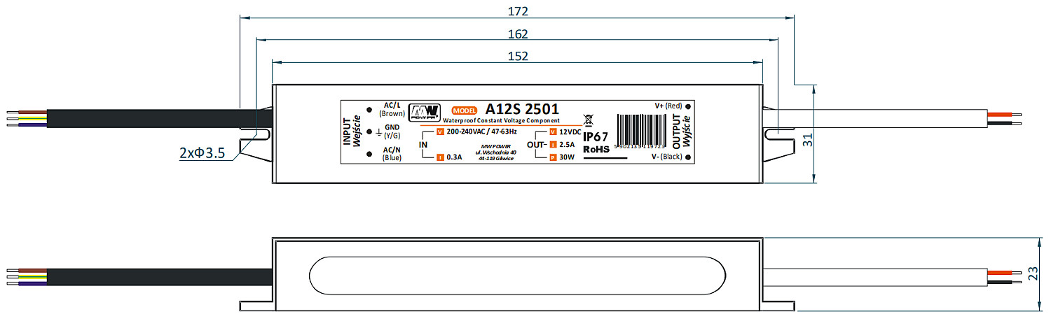 | Klasa szczelności: | IP67 |