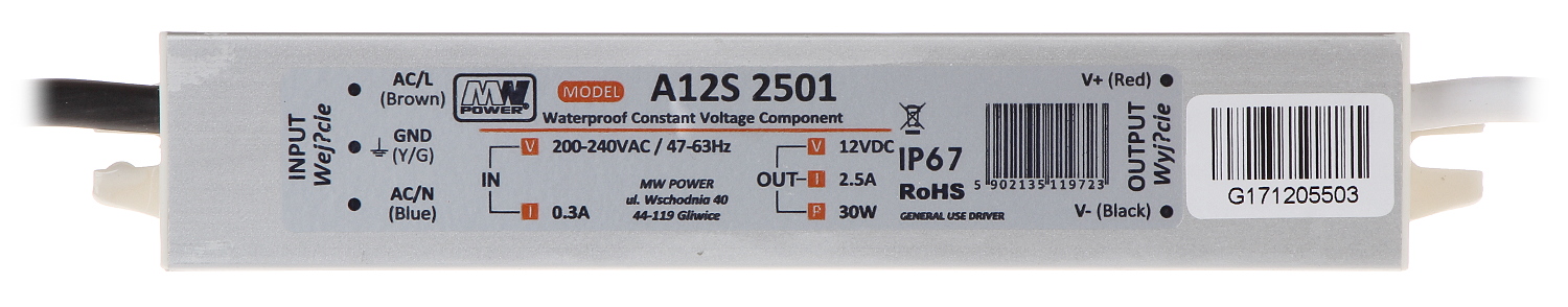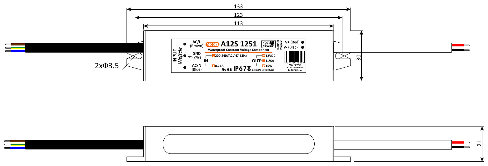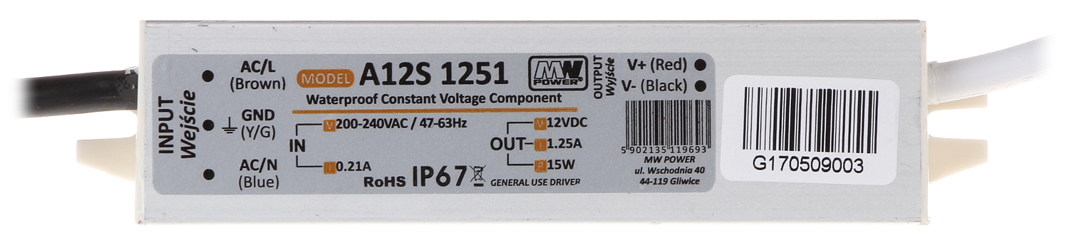 | Napięcie wyjściowe: | 12 V DC |