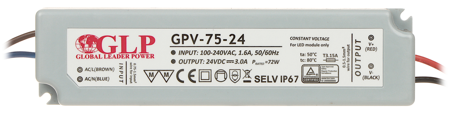 Uwaga! Jeżeli zasilacz przeznaczony jest do pracy ciągłej (24H) to prąd znamionowy zasilacza nie powinien przekraczać 80% prądu maksymalnego