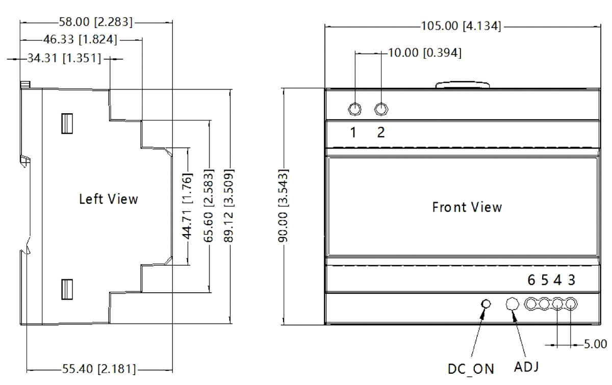 Zasilacz impulsowy instalowany na szynie TS35/7.5 lub 15 DIN, odporny na wysokie temperatury pracy (do 70°C)