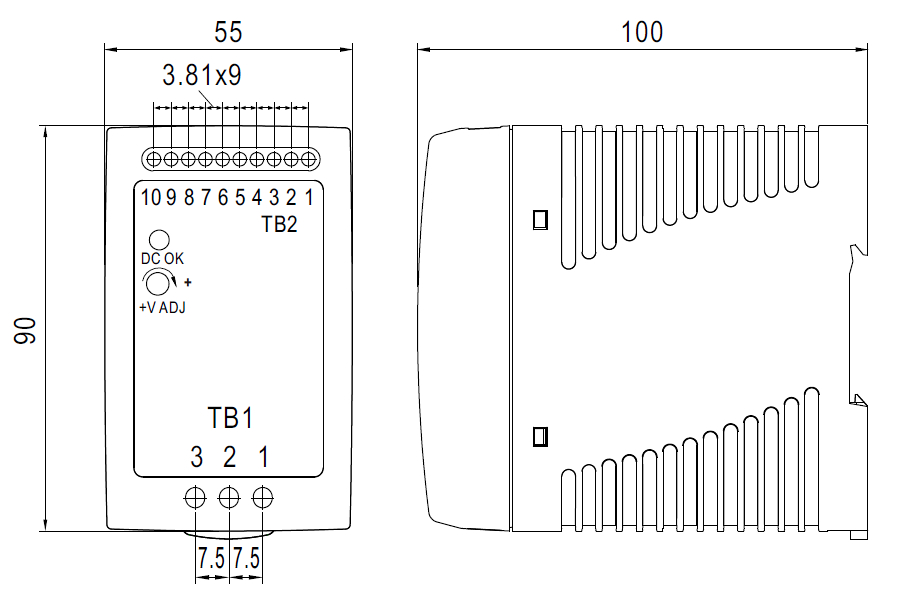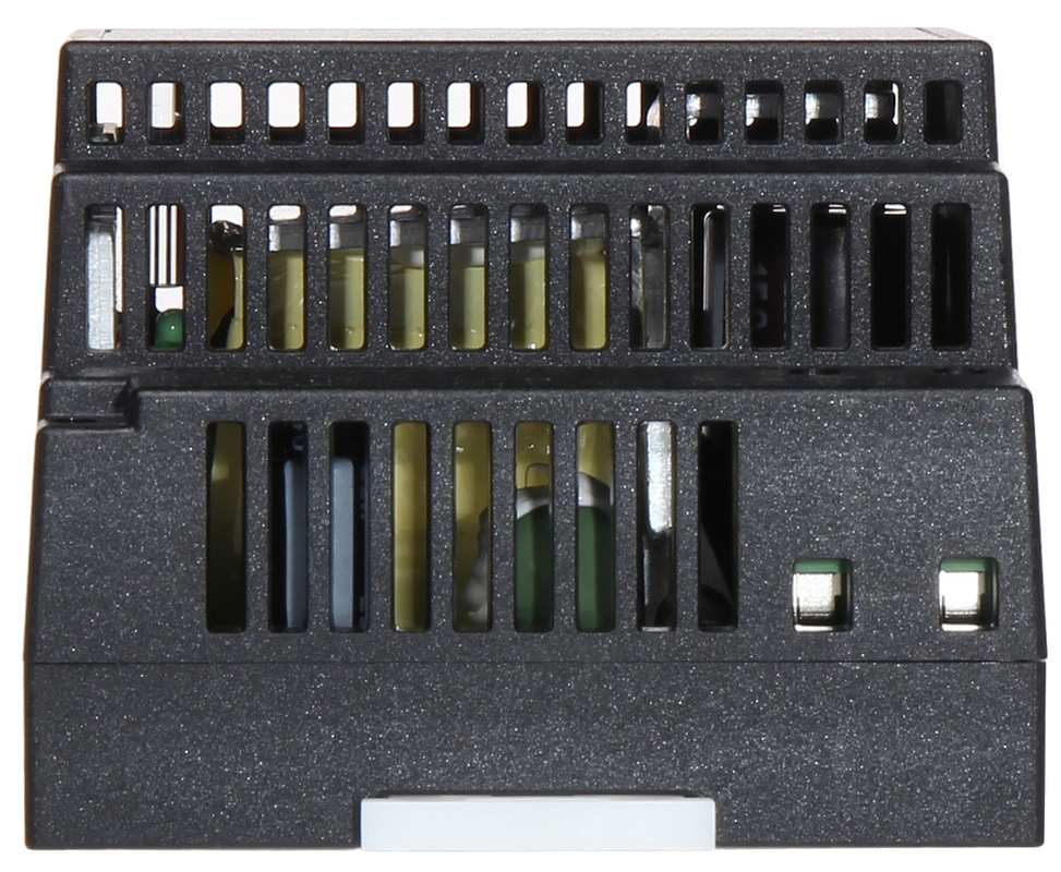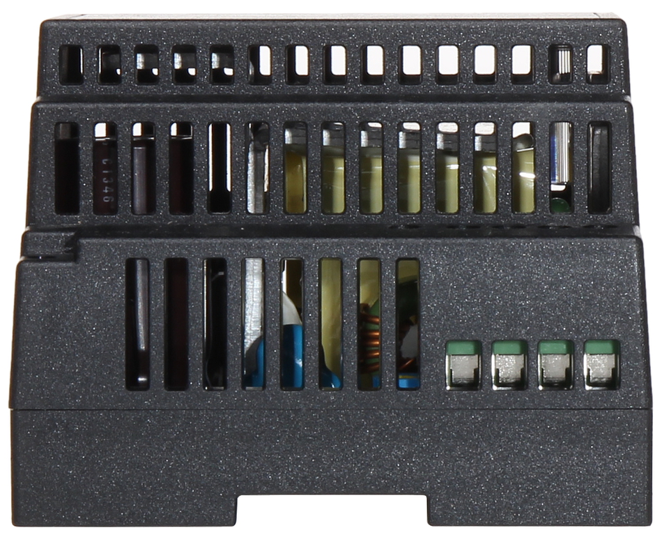Zasilacz impulsowy instalowany na szynie TS35/7.5 lub 15 DIN, odporny na wysokie temperatury pracy (do 70°C)