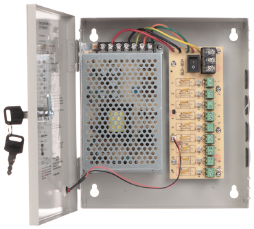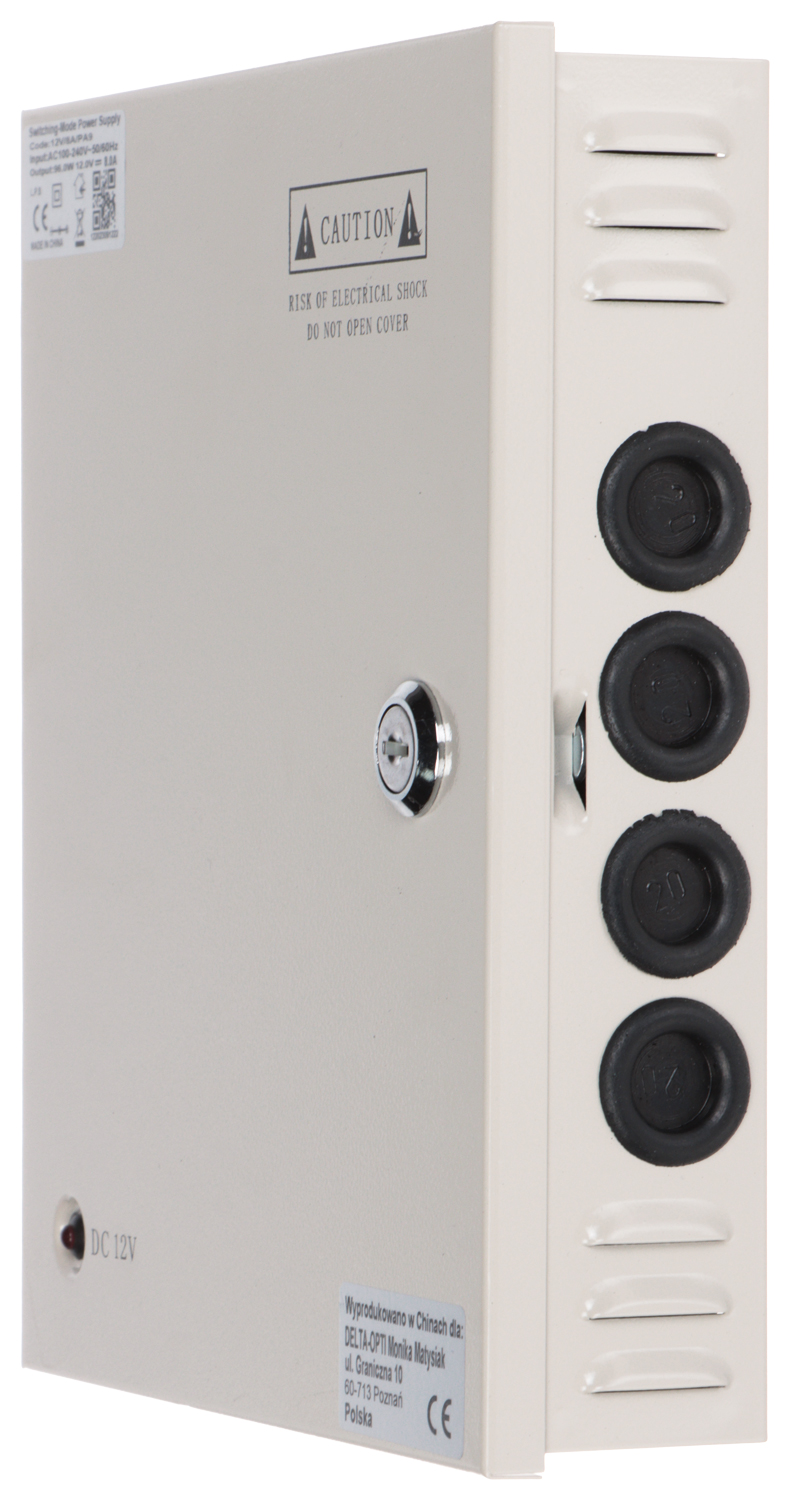 Zasilacz podaje na wyjściu napięcie DC 12V i obsługuje do 16 urządzeń.