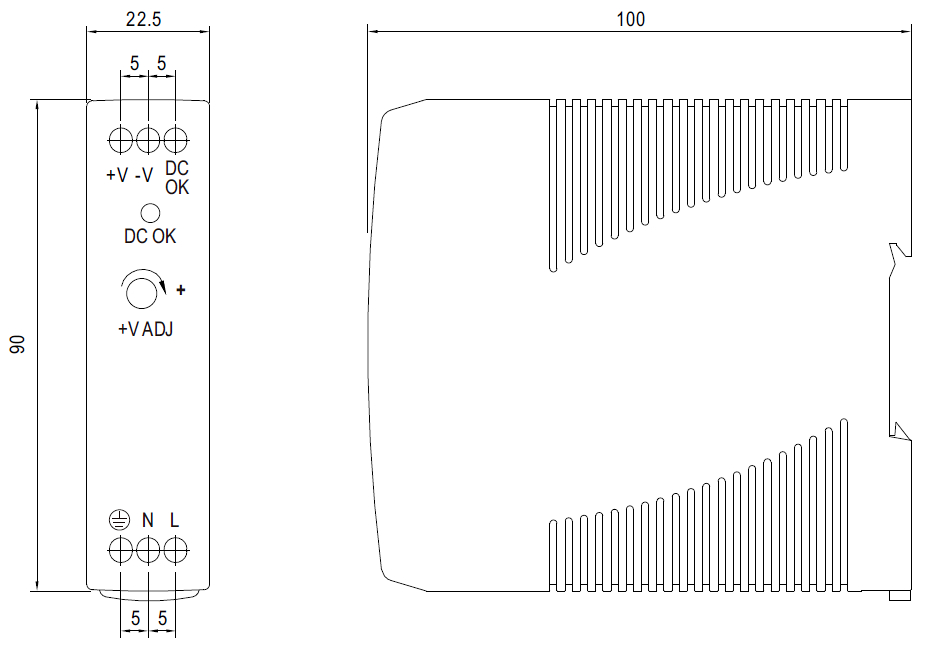 Zasilacz impulsowy instalowany na szynie TS35/7.5 lub 15 DIN.