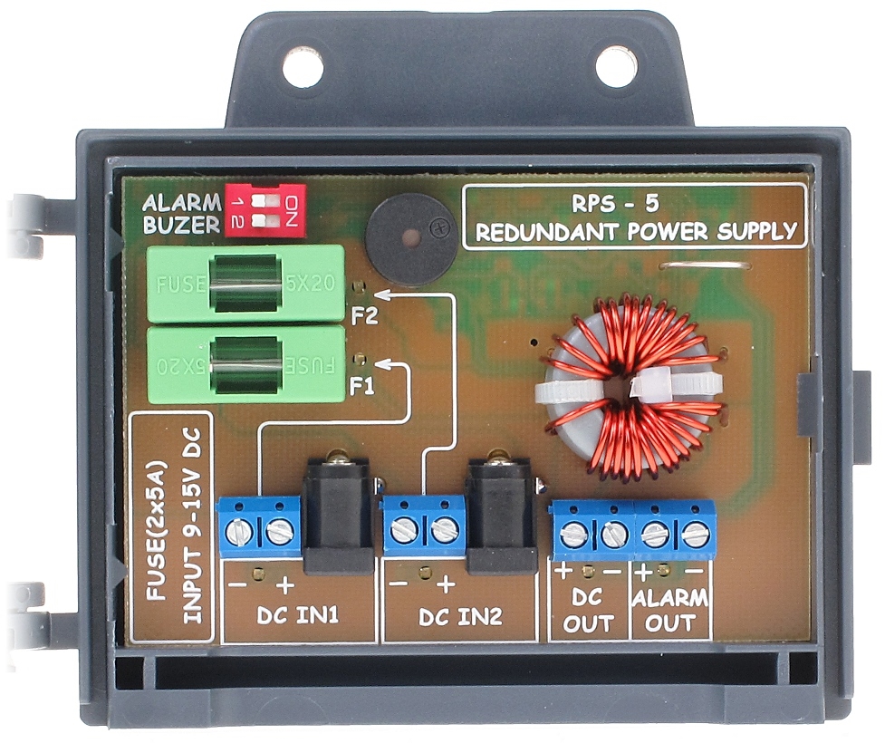 RPS-5 umożliwia podłączenie dwóch zasilaczy lub akumulatorów równolegle.