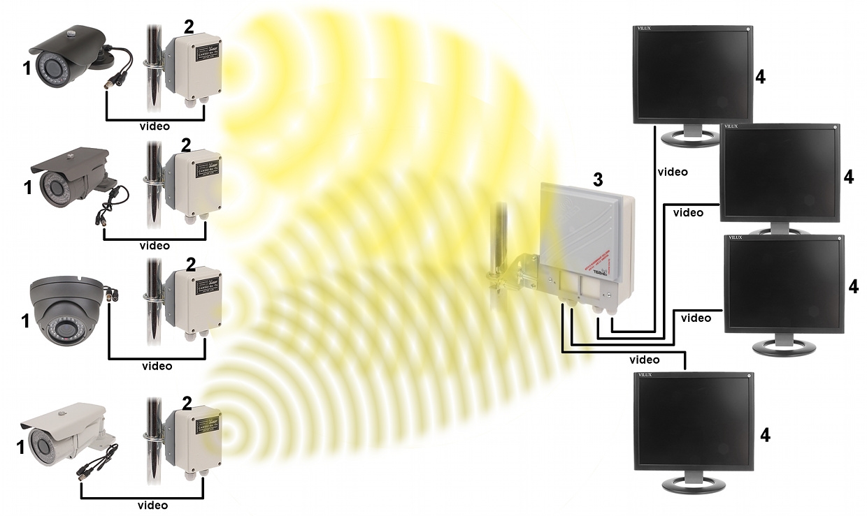 Urządzenia posiadają wbudowaną antenę, która umożliwia dobrą transmisję na odległość do 300m i mogą pracować na jednym z 7 kanałów.
