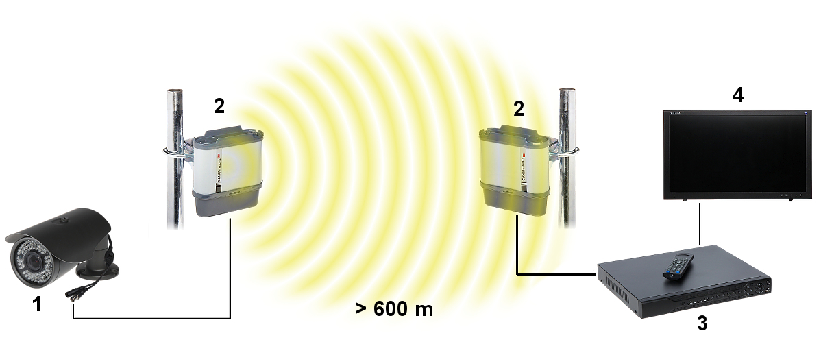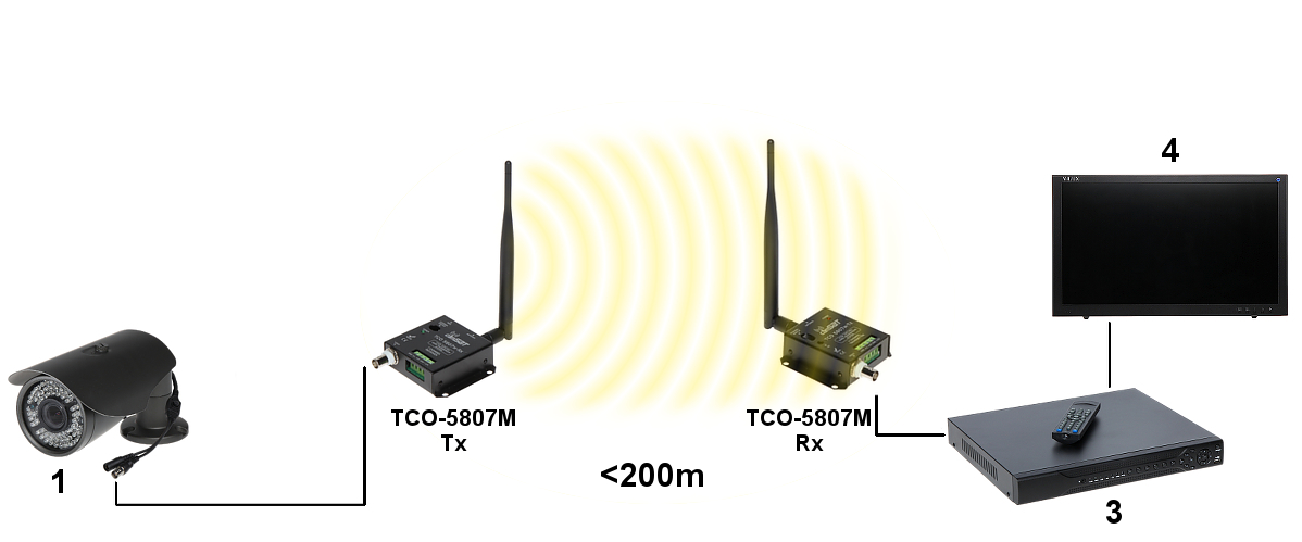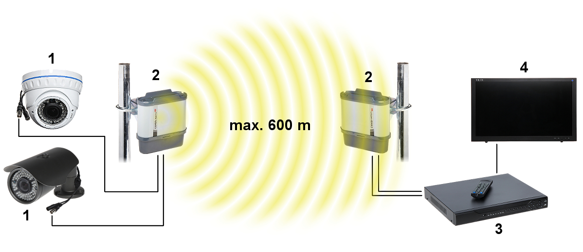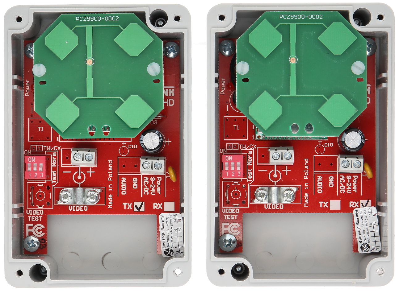 Urządzenia posiadają wbudowaną antenę, która umożliwia dobrą transmisję na odległość do 300m i mogą pracować na jednym z 8 kanałów w paśmie.