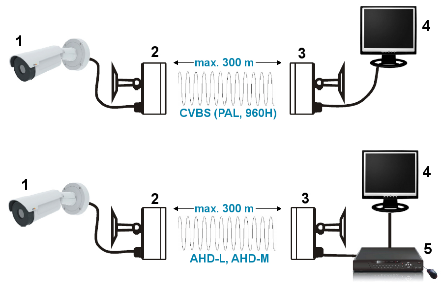 Zestaw AV-300AHD-MINI służy do przesyłania obrazu wysokiej rozdzielczości w standardzie AHD-M / AHD-L / PAL.